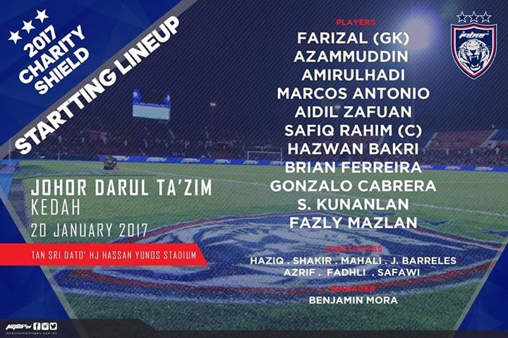 Johorsoutherntigers On Twitter 2016 Charity Shield 20th January 2017 Starting Lineup Jdt Vs Kedah Https T Co 9uzwb0ff1y Twitter